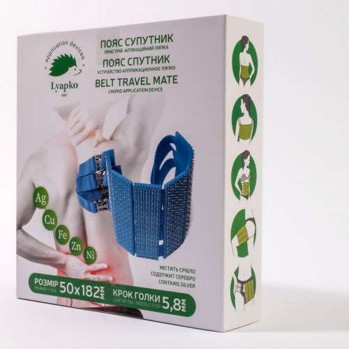 - ПАЛП пояс "Спутник" 5,8 Ag состоит из 6 пластин и 4 регулируемых поясов, количество игл – 1674. Размер каждой пластины – 50x182 мм. Шаг игл 5,8мм.