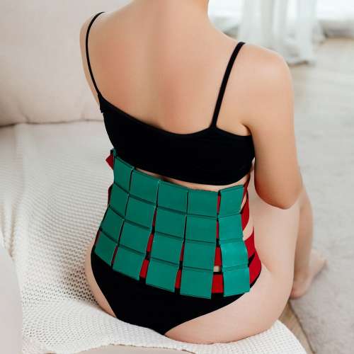 - При необходимости для одновременного воздействия на основную и вспомогательную зоны пластины пояса можно раздвинуть, например: 3 на область поясницы, 3 на область живота. При заболеваниях суставов фиксация выше и ниже суставов.
