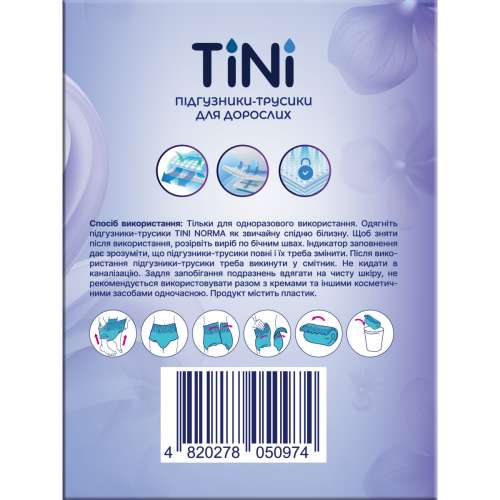 - Гигиенические подгузники-трусики TINI мягкие, тонкие и поэтому незаметны под одеждой.