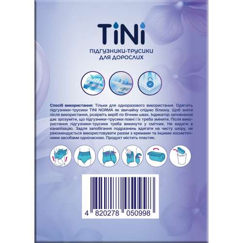 Подгузники-трусики для взрослых XL4 10шт TINI NORMA