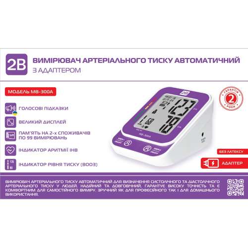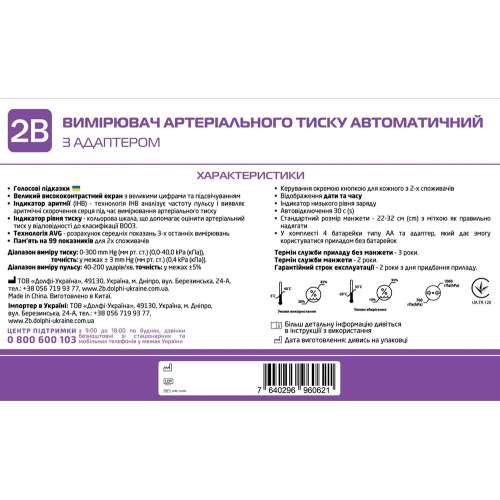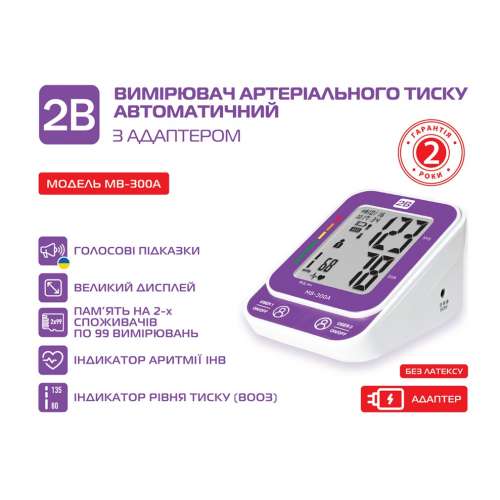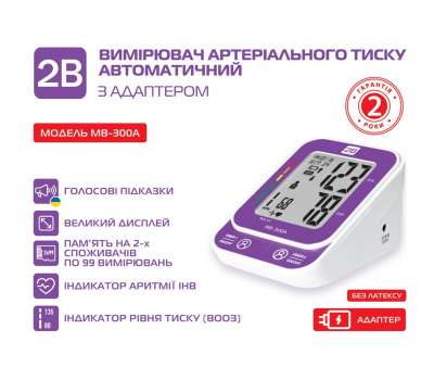 Автоматический тонометр МВ-300А с адаптером изготовлен из прочных и качественных материалов, успешно прошел клинические испытания и рекомендован для лиц старше 18 лет. Прибор соответствует украинским и европейским стандартам, обладает высокой точностью измерений и может использоваться как в медицинских учреждениях, так и в домашних условиях.