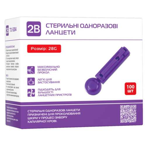 Ланцеты для глюкометра 100 шт 2B 28G TD-5084