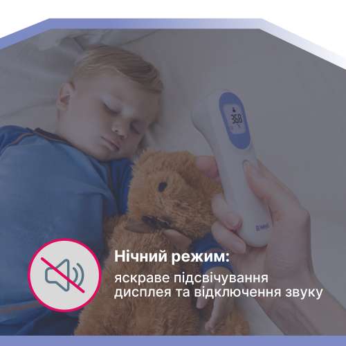 Удобство для ночного использования (Ночной режим): Специальный режим с подсветкой дисплея и беззвучным измерением позволяет легко контролировать температуру ночью, не нарушая сон.
