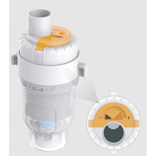 - Регулировка скорости распыления: Новая конструкция камеры позволяет не только выбирать размер частиц, но и регулировать скорость подачи аэрозоля (от 0.25 до 0.55 мл/мин). Это делает ингаляцию комфортной как для взрослых с большим объемом легких, так и для маленьких детей.