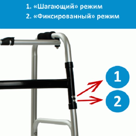 Универсальные ходунки «OSD-Q101» могут использоваться в двух режимах: фиксированный и шагающий. Для изменения режима необходимо нажать на кнопку на раме ходунков (см. Рис. 1).