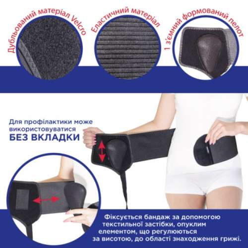 - При небольших грыжах, если нет необходимости в значительной компрессии, вкладыш и упругие вставки могут быть заменены ватным тампоном необходимого размера.