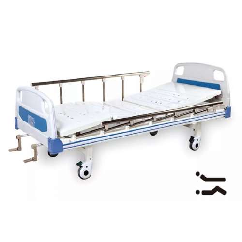 - 4-секционное ложе кровати изготовлено из стали; изменение положений секций позволяет пациенту находиться в максимально удобном и более физиологически более выгодном положении. Ручки для регулировки наклона секций изготовлены из металла.
