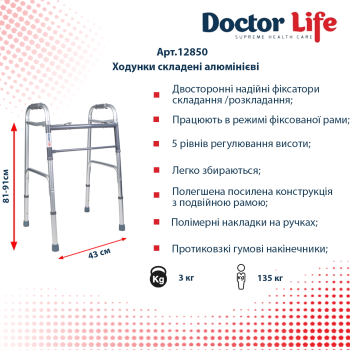 Ходунки складные фиксированные Dr.Life 12850 алюминиевые