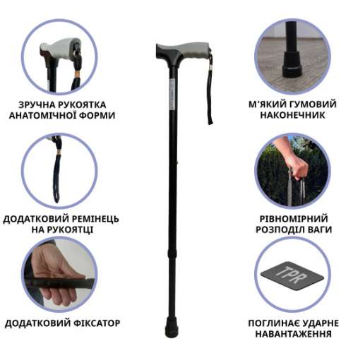 - Практическая алюминиевая трость для надежной поддержки во время ходьбы.