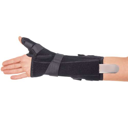 - Регулируемая застежка липучка в области большого пальца обеспечивает оптимальную степень фиксации, но при этом предупреждает атрофии мышц.