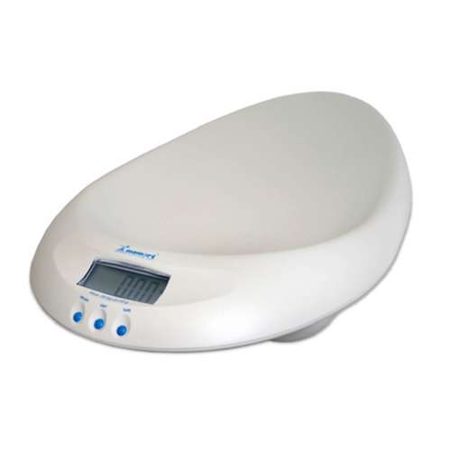 Вогнутая форма для удобства взвешивания младенцев. Электронные детские весы для новорожденных до 20 кг с шагом измерения 5 грамм, фиксацией веса, памятью. Производства Венгрия.