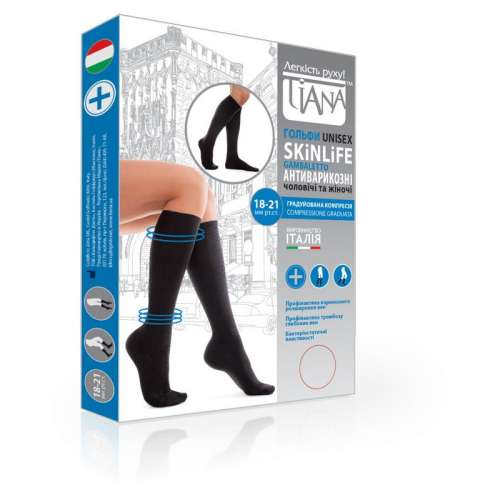 - Компрессионные гольфы Unisex SkinLife рекомендуется носить при варикозном расширении вен, больших нагрузках на ноги (избыточный вес, длительная работа сидя или стоя, поднятие тяжестей и т.д.), плохом кровообращении, чрезмерной потливости ног, при занятии спортом и с целью профилактики тромбоза глубоких вен.