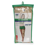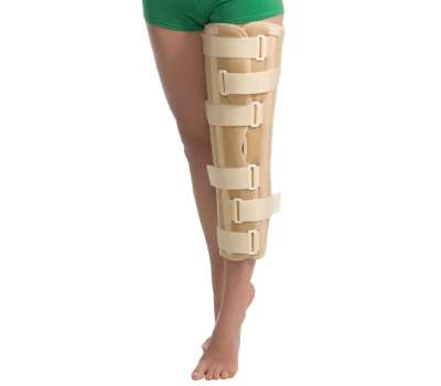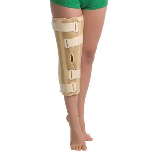 Коленный бандаж обеспечит жесткую усиленную фиксацию сустава с захватом нижней трети бедра и верхней трети голени, что поможет полностью исключить осуществление движений в области колена. Показан к применению при артрозе, артрите вчастности ревматоидном и подагрическом, для профилактики патологической установки нижней конечности при умеренном вальгусном или варусном отклонении голени. Так же применяется в роли шини при транспортной иммообилизации, в случае аллергии на гипс, при травмах капсульно-связочного аппарата коленного сустава различной степени тяжести, при переломах без смещения большеберцовой кости, в период ранней реабилитации после снятия гипсовой повязки при переломах отростков большеберцовой и бедренных костей, при умеренно выраженной нестабильности коленного сустава паралитического происхождения.