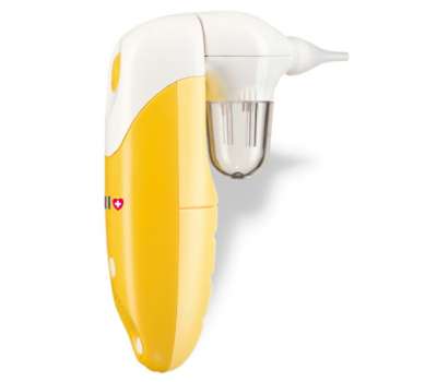 - Электронный аспиратор для маленького носика B.Well Kids WC-150 яркого желтого цвета и удобной формы.