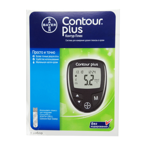 - Технология "No coding" (без кодирования) позволяет избежать ошибок вследствие неправильного кодирования и использовать глюкометр "Контур Плюс" сразу после вскрытия упаковки.