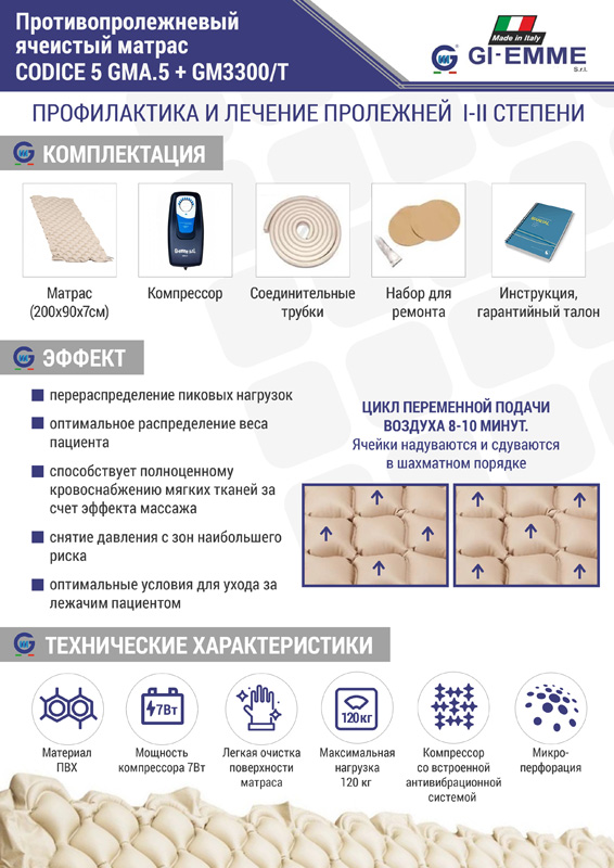Комплектация Противопролежневый матрас ячеистый GMA 5 Gi-emme: