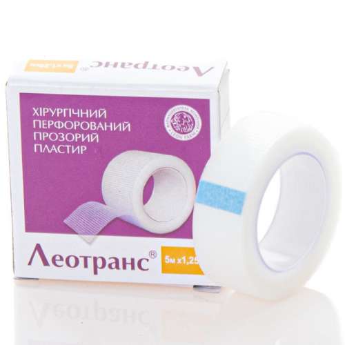 ЛЕОТРАНС – хирургический перфорированный прозрачный пластырь на ПОЛИМЕРНОЙ основе. Универсальный пластырь на полимерной основе используется для фиксации повязок любого размера на различных участках тела, на лице и в области глаз. Применяется также для крепления на теле катетеров, зондов, внутривенных трубок, мочевых катетеров, других медицинских устройств. Гипоаллергенный акриловый клей подходит для чувствительной кожи, не вызывая аллергии и раздражения после использования.