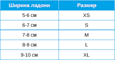 Таблица для определения размера медицинских перчаток: