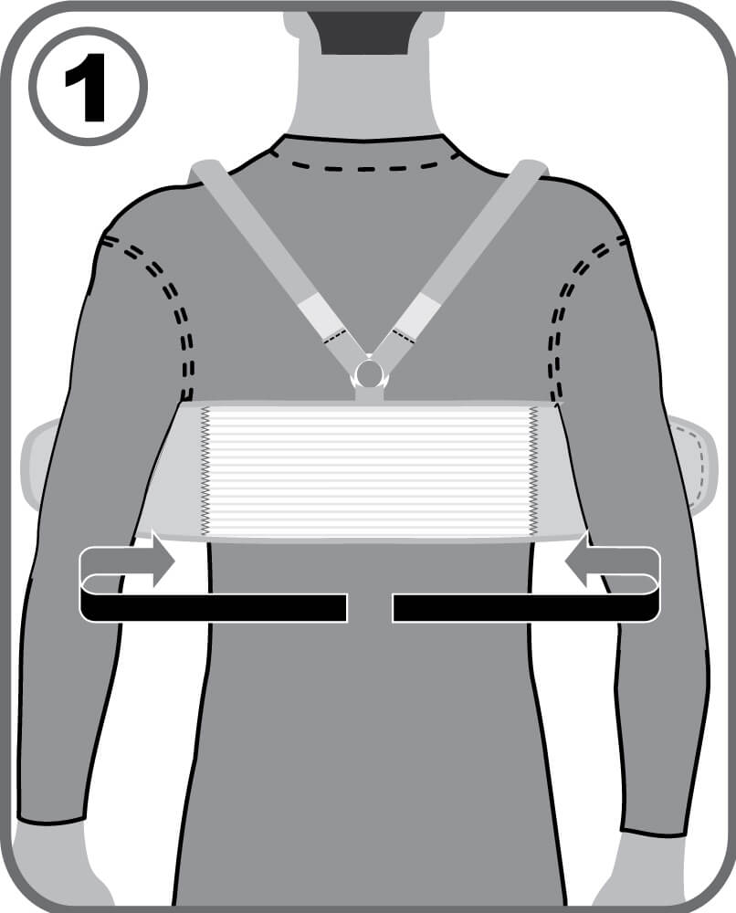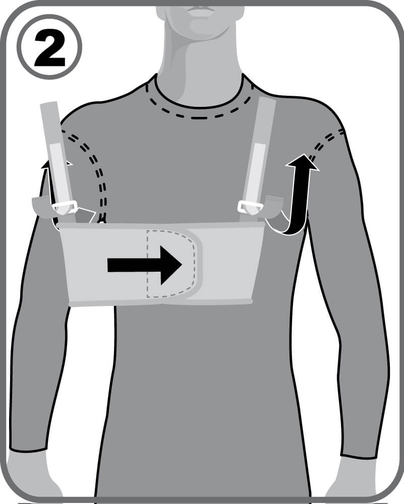 - Бандаж закрепляется с помощью застежки-липучки и наплечных ремней, которые предотвращают сползание бандажа вниз.
