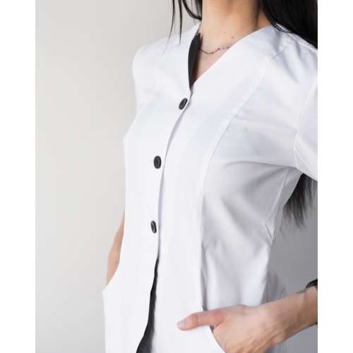 Медицинский халат Оливия белый-черный на пуговицах ТМ Белый Халат