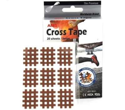 Для немедикаментозного точечного лечения мышц используют тейпы Ares Cross Tape. Кинезио тейпы этой модификации отличаются от всех остальных тейпов своей формой: не эластичные квадраты разных размеров. Кросс тейп крепится на акупунктурные, болевые и триггерные точки в целях регулирования напряжения, расслабления мышц и связок, поддержания и улучшения общего физического равновесия.